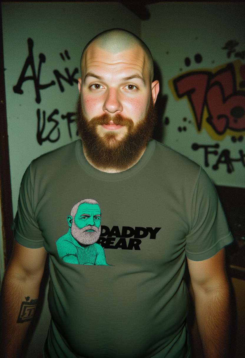 Prepárate para rugir con estilo. Esta camiseta "Daddy Bear" es un tributo a todos los osazos con presencia, barba y mucho power. Ilustración de trazo pop y colores ácidos. Ideal para lucir en el Orgullo, en tu cita con grinder, o para dejar claro quién manda en la manada.